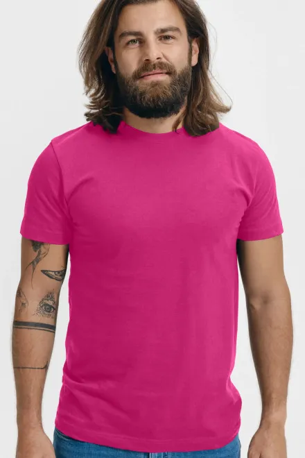 100% ekologiška GOTS medvilnė • 160 g/m2 (GSM) • 15 spalvų • dydžiai XS iki 2XL • Poros koncepcija - galima deranti vyriška versija