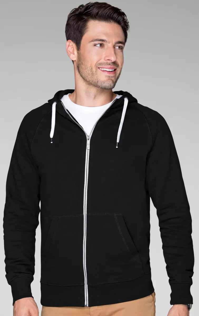Vyriškas medvilninis marškinėliai su kišenėmis, užtrauktuku, gobtuvu ir kontrastingais elementais. Daugiau