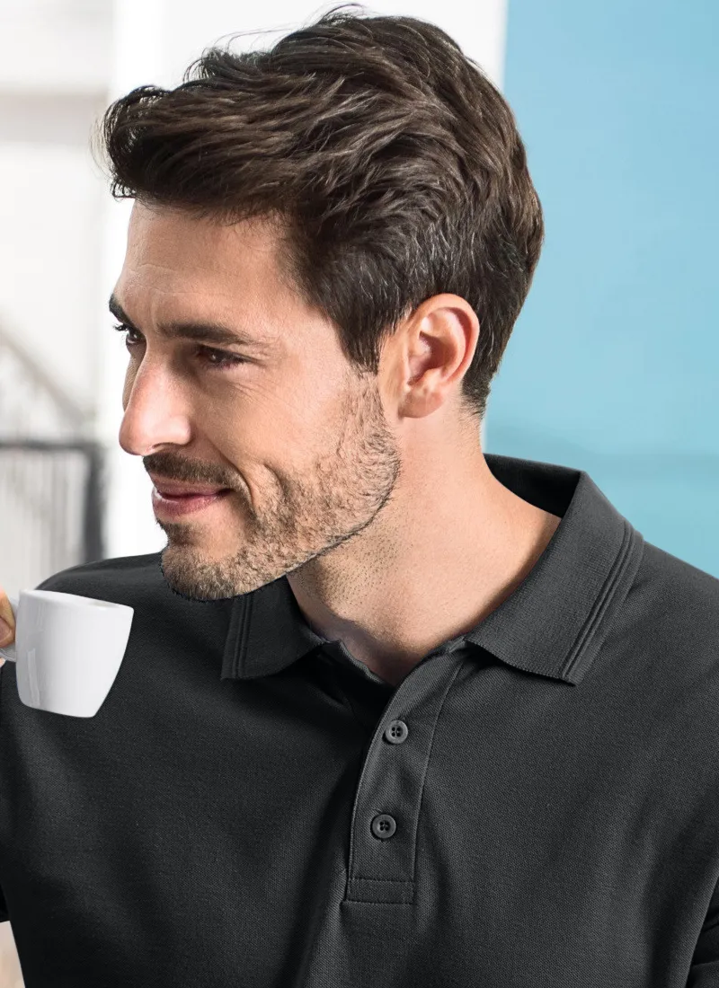 Vyriški polo marškinėliai ilgomis rankovėmis yra pagaminti iš storesnės medžiagos, kurią sudaro 65% medvilnės ir 35% poliesterio, kad būtų užtikrintas maksimalus komfortas visą dieną.