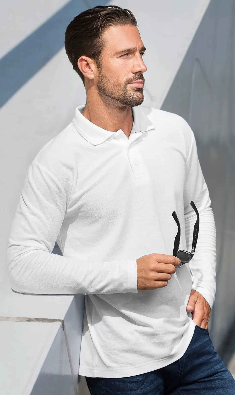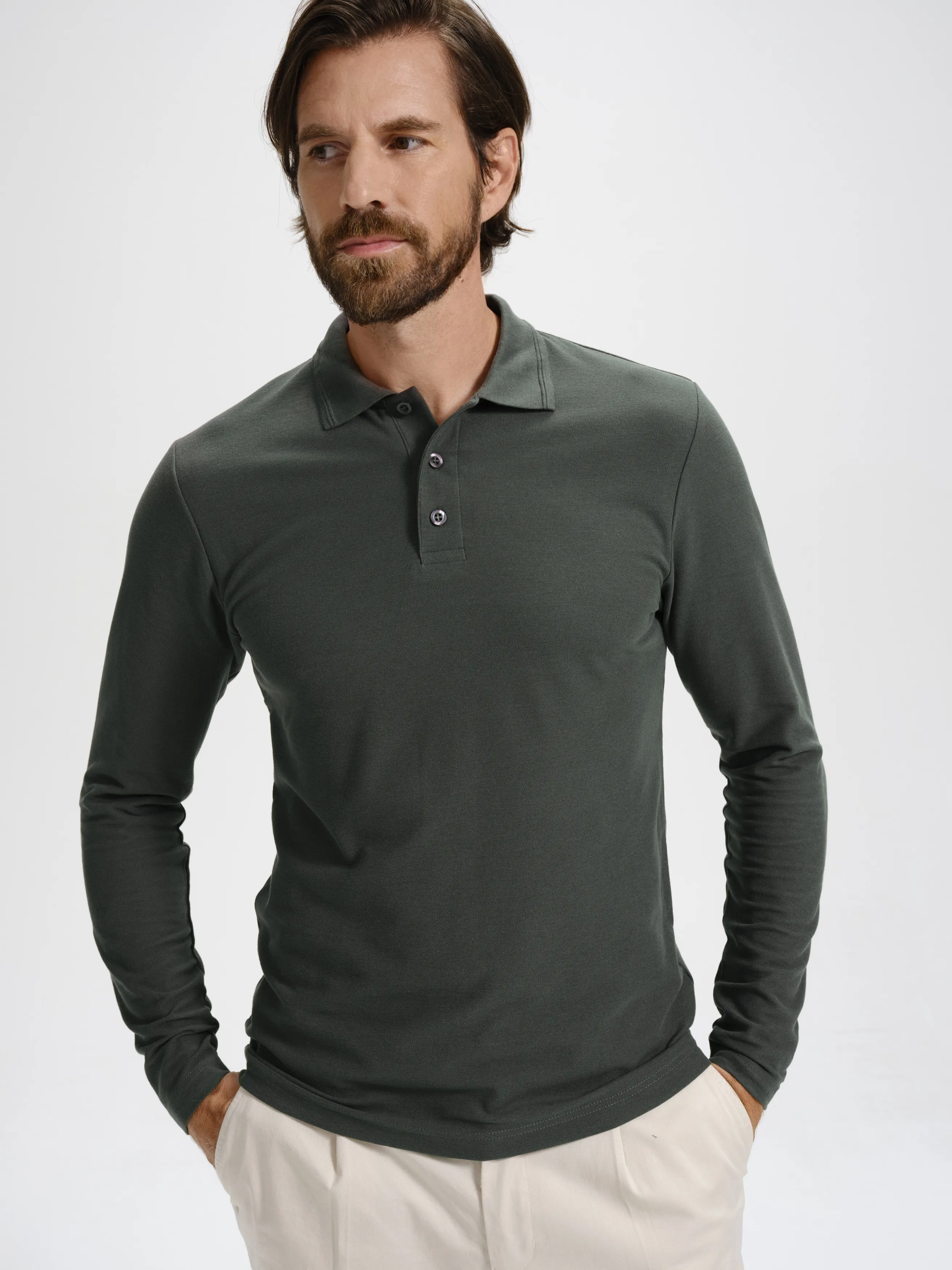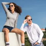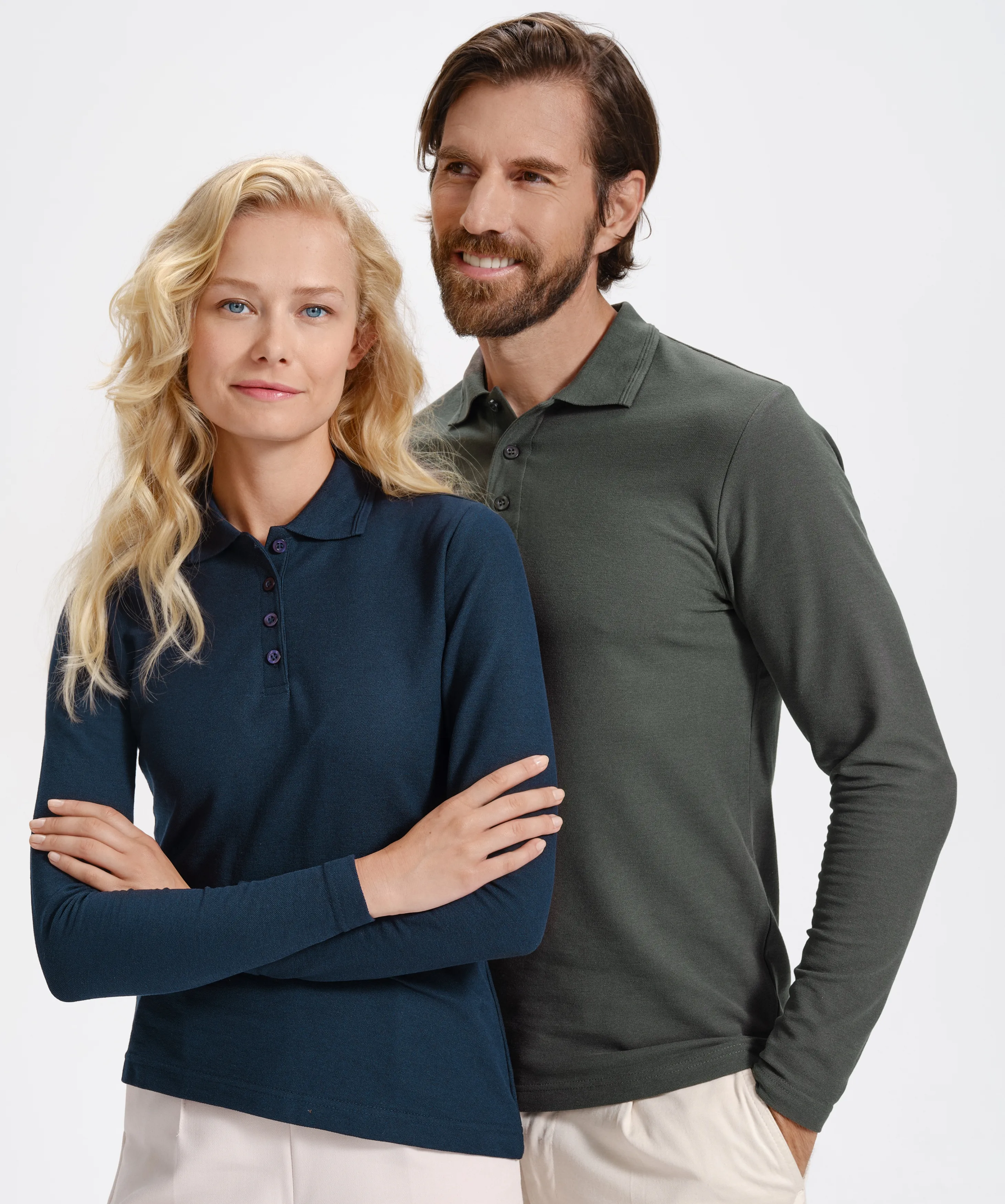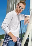 Išimtis: vyriški polo marškinėliai ilgomis rankovėmis, storesni, turi skirtingą audinio sudėtį vienoje spalvoje: