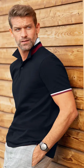 - Vyriški polo marškinėliai su kontrastinga dryžuota apykakle